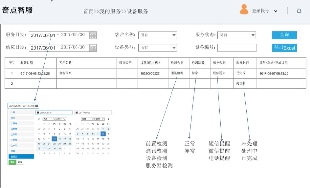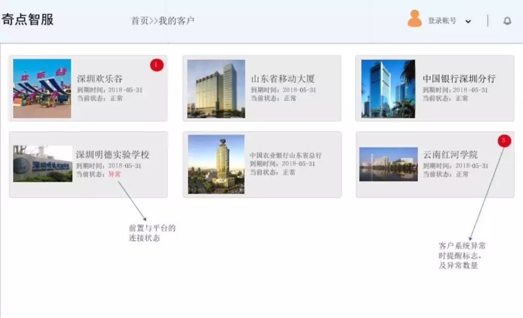 作为高速成长的科技企业,数智国兴兼备前沿的互联网思维与夯实的研发实力。从推动互联网云服务发展的初心出发,从创立至今,数智国兴一直致力通过一体化的解决方案推动一卡通行业全面拥抱互联网的进程。奇点智服是为集成商所打造的人工智能项目监测服务,基于B/S架构打造的“项目管理+服务跟踪”的价值生态系统,目前产品包含项目管理、软硬件监测、服务跟踪(故障提醒)、评价反馈四大功能模块。产品层面基于目前集成商项目管理问题进行功能上的匹配与研发,从而不断的优化助力集成商售后升级。以下为使用截图: