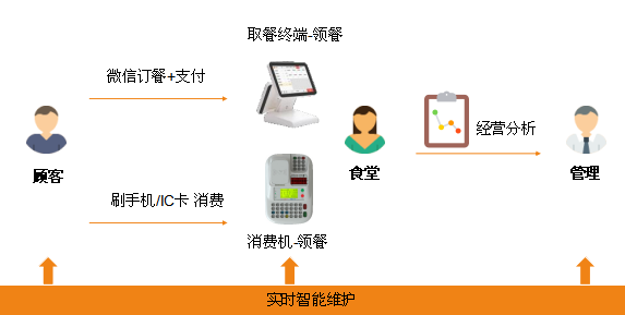 智慧食堂消费服务系统是一款专为园区、企业集团、政府单位专业打造的一套含设备+软件+云服务的智慧食堂解决方案。将帮助您在增加营收,降低成本和吸引客源等方面提供更好的用户体验。