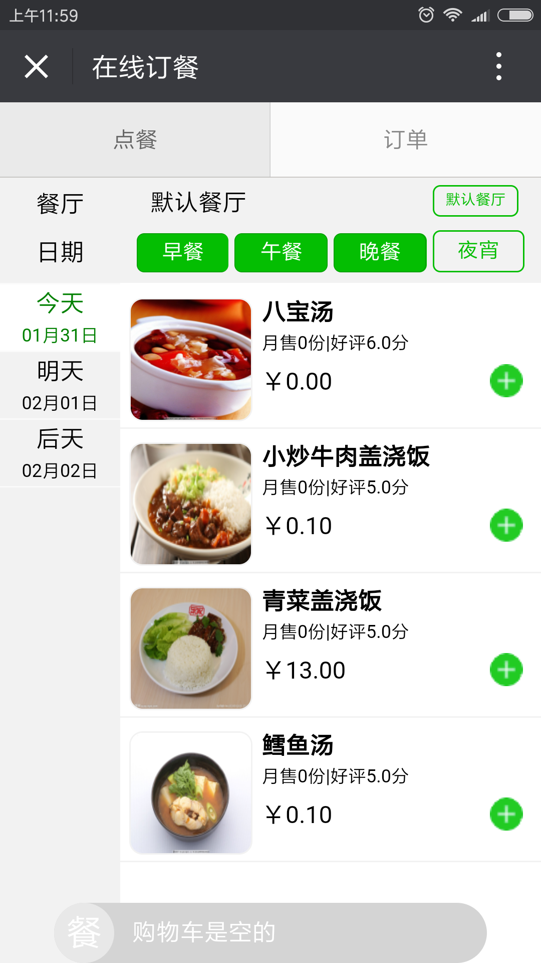 1.可预先知道食堂每日菜品,以及即将发布的菜品