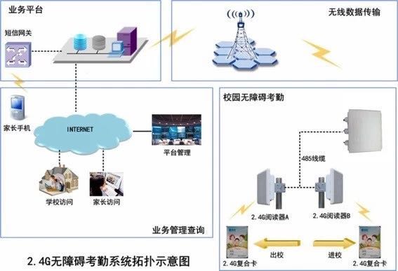 校园安全事故防治不仅需要社会、学校、家长的参与,更需要有效的技术手段。2.4G 无障碍考勤方案通过射频技术、无线通信技术等先进手段保障学生进出校园安全,这一解决方案的使用受到了学校及家长的欢迎。