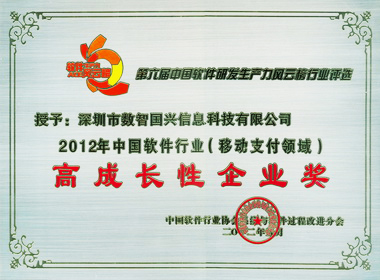 2012年中国软件行业(移动支付领域)高成长性企业奖